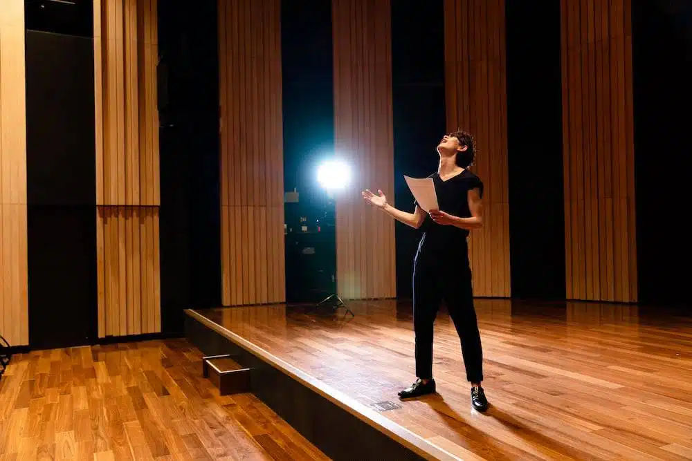 L’espace et la projection : Au théâtre, vous auditionnerez généralement sur une scène ou dans une grande salle de répétition. Contrairement au casting cinéma où la caméra zoome sur votre visage, ici votre corps entier doit s’exprimer. Votre voix doit porter naturellement sans micro, et vos gestes doivent être lisibles depuis le fond de la salle. Les directeurs de casting évaluent immédiatement votre capacité à occuper l’espace scénique avec assurance.